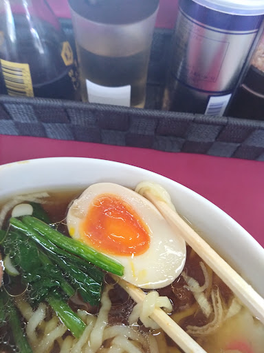 Read more国道4号線沿いにある白河ラーメン屋さん。 澄んだスープにコシのある縮れ麺が食べられます。 この日はラーメンと焼肉弁当を注文してみました。 ラーメンは縮れ麺た手打ちの麺が美味しいコシもあります。 スープは鶏ガラの澄んだスープで醤油味、しょっぱ過ぎずあっさりとした味わい。 チャーシューはもも肉で柔らかく燻製の風味が少しします。ほうれん草にノリ、なるとおなじみの具材と煮玉子が普通のラーメンでも入っているのがうれしいです。 焼肉弁当は豚肉をタレで焼いたシンプルものと野菜少しタクワンが入っていました。 200円で頼めるのでライスのかわりに頼むといいかもしれません、お肉に絡んだタレが濃いめでライスがすすみます。 本格的で美味しい白河ラーメンが食べられるお店では混...