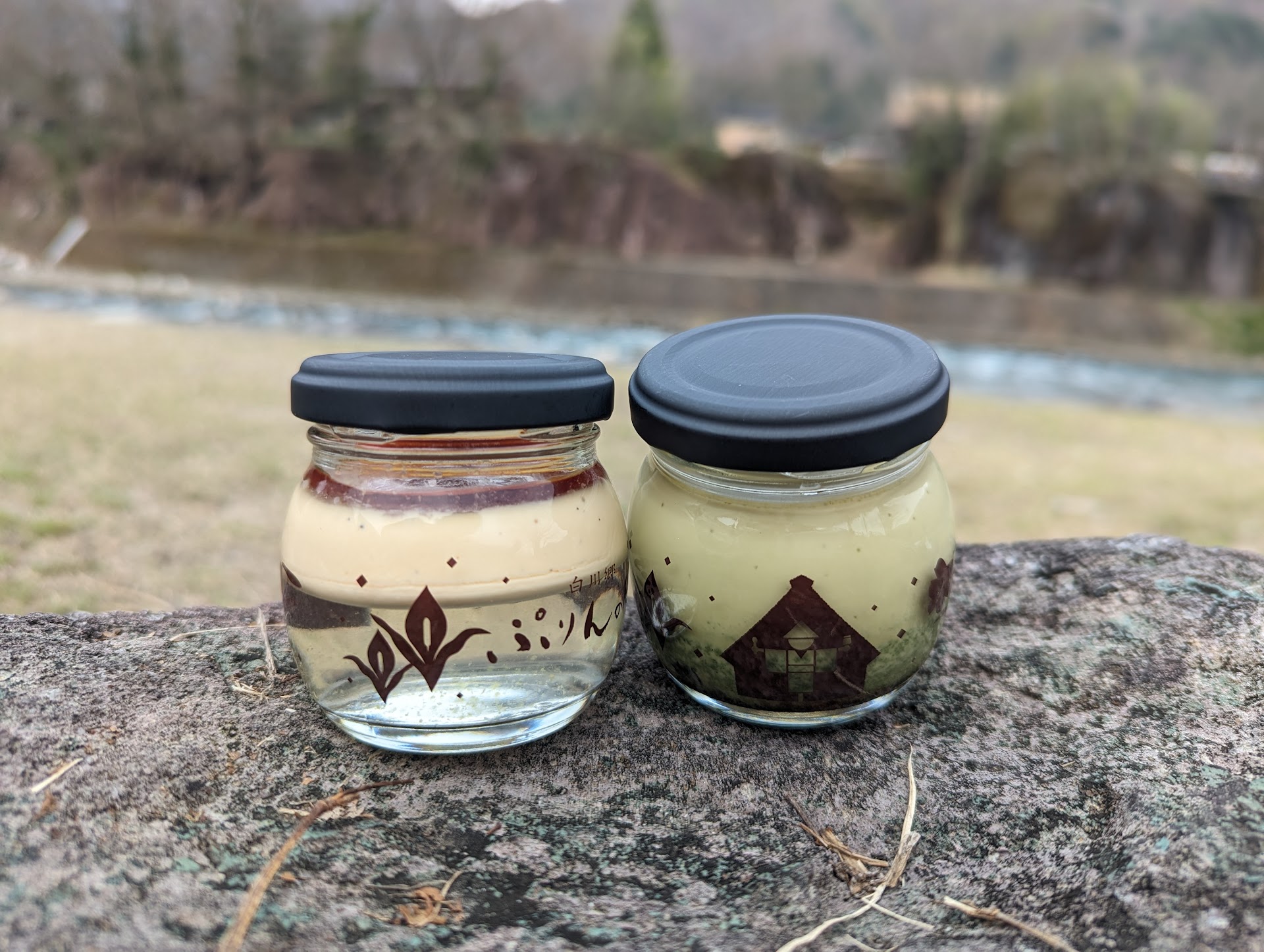 I ordered this pudding not thinking much about it because I've had a lot of Japanese pudding and most of them just taste sugary. But this is one of the most delicious puddings I've ever had. It comes in small little glass jars which look cute. The shop itself looks like one of those gassho. houses. I went on a weekday but it was still crowded. You can't eat inside so you can either have it on the go or you can sit outside where they have kept a bench and eat it there. The staff was very polite, and I got a matcha flavour one and a transparent one. I took it on the go and sat by the lake to eat it. I just enjoyed the overall Vibe of it and I took the glass jar home. It's such a cute little jar. I feel that it is completely worth the price. And next time when I go to shirakawa go I will definitely stop by this shop and order more puddings. 5/5 totally recommended to anyone who's into...