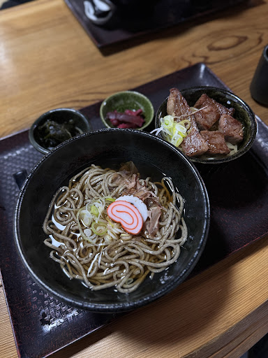 Read moreVery pretty exterior and interior. Was pretty much the only open restaurant in mid october. Waitress was nice, the other one that came to pick up our order was very annoyed but spoke a little English. She asked us, very annoyed, if we needed the English menu, after we had been there for 20 minutes and already picked out food on the Japanese menu. Food came after another 15 minutes, we had to ask for water/tea. Every other table got it automatically. My partner ate the oroshi soba + Hida beef bowl set and I ordered the futsukake oroshi soba. His dipping sauce didn't taste like anything, he didn't mind. His Hida beef bowl was good. My soba tasted like wet dog smells and my oroshi with rice had the consistency and taste of barf. I generally like slimy things (tororo, natto, grated daikon) but this was not for my or my partner. I can't recommend this place, except for a beef bowl, but don't get the set. It cost us 4200¥...