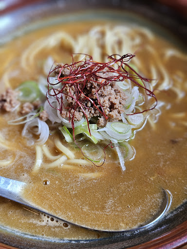 Read more白川村にあるが、いわゆる合掌集落からは幾分離れており、集落観光の合間に入るような店でもない。そもそも立地や店構え、メニュー構成からしても最初から観光客向けではなく地元の常連のお客さん相手のご商売だろう。棚に並ぶいいちこのキープボトルからもそれが伺いしれる。 ただ、相手が観光客と見るや、店主のあたりが分かりやすく強めになるのは、どうなんだろうか。世界的観光地で商売を営むことの葛藤もあるのかもしれないが、もうちょっと愛想よくしてもバチは当たらんだろう…駐車場は、知らん人ならあれは間違えるぜ…。 ラーメンは、醤油に塩に坦々麺に味噌にあれにこれにとあるが、おすすめは坦々麺のようだ(後から気づいた)。同伴者の頼んだ醤油はアゴ系の魚粉の香りが強め目の、強いて言えば高山ラーメン的な作り。これはこれでなかなか美味しい。自分はなんとなくで辛味噌ネギラーメンだったかな、そんなのをたのんだ。なんだろうか、野菜たっぷりの味噌汁を飲んでいるだけのような、コクと香りと旨みの弱さ。野菜がたくさん食べれたということ以外に満足できるところはなかった。追加で頼んだチャーハンも米が割れまくっていて、いわゆるバサバサしたチャーハン。お世辞にも褒められたもんではなかった。家で作ってももうちょいどうにかなる。 ラーメンが好きで、普段から美味しいラーメンを食べ歩いている人、食べ慣れている人には、ここのラーメンを食べても何かしらも心に刺さるものはないだろう。 ただ、それこそ世界的観光地まで車で5分の立地にあって、ラーメン一杯を650円という価格で提供する店主の心意気は立派だと思う...