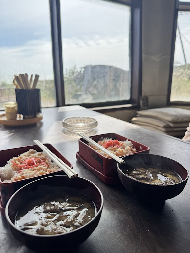 While we were eating, a local customer also came in, and we caught the smell of firewood – perhaps from the wood he collects being used for cooking. The crab rice was a little on the salty side, but tasty, and the miso soup with mushrooms was fresh and comforting.
