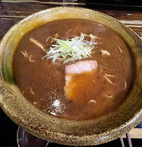 いざ店構えを拝見すれば、まるで山深き隠れ里の庵の如し。質素ながらも品格を湛え、ただ者ならぬ気配を漂わせております。一歩足を踏み入れれば、そこは仄暗い灯りが揺らめく異界。俗世の喧騒は一切届かず、ただ静寂のみが支配する空間。客人たちは皆、声を潜め、恭しく丼を抱え、ひたすらに麺と向き合っております。