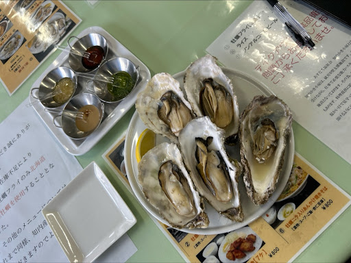 たまたま入った感じでしたので正直期待してませんでした…が、入って大正解でした。 生牡蠣は扱ってないので食べたい方は残念ながら無理です。 こちらで牡蠣フライをいただきました。 ソースは計5種類、ニラソース初めていただきました。 好み分かれると思いますが美味しかったです。 牡蠣は噛んだ瞬間ジュワーと滴るエキス。 衣は薄め、とてもとても美味しくて驚きました。 一番ビックリしたのは汁物、勝手に味噌汁だと思って飲んだらスープ!?仕立てでして、一瞬頭が錯覚起こしてしまいました ご飯物は800円とお値段も優しい設定なので次回はまた違う物いただきたいです。 再訪、今回も牡蠣フライ定食そして蒸し牡蠣をいただきました 蒸し牡蠣にも4種類ものタレが付きました! 若干、牡蠣の殻が付いてたので注意してください。 お好みですがレモンが1番合うと思いました。