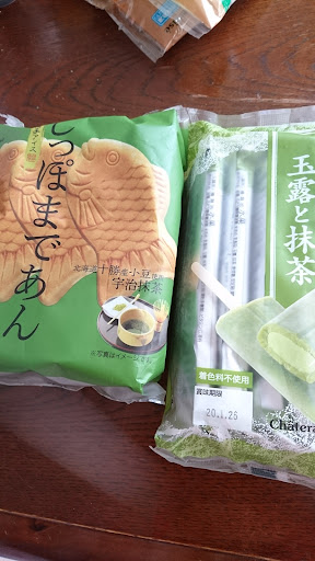 今日も"しっぽまであん"というたい焼き風アイス(お気に入り!)とアイスバーを買いました。 後、カップデザートの詰め合わせ(タピオカ風ミルクティープリン。甘い。クリームがちょっと甘過ぎるけど、ミルクティープリンは美味しい)と冷凍ピザを買いました。