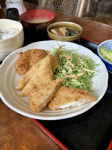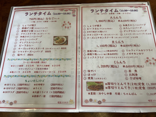 Read more昔懐かしいカフェ&レストラン。古さは感じるが居心地はいい。ランチは570円~とリーズナブル。店内奥にカラオケルームが有り、歌える兼、喫煙ルームとなっている様子。キッチンにいるのはおそらくご夫婦。ホール担当のスリムで愛嬌のある女性は娘さんかな。本日はCランチ¥950からミックスフライを注文。フライ3品(アジフライ・イカフライ・コロッケ)に、ご飯・味噌汁・小鉢・漬物・フルーツ・ミニうどんが付いてくる。かなり贅沢な品数。食べ盛りの高校生ならこれで白飯3杯はいける。田舎の廃れたカフェかと思いきや、これがなかなかどうして、近くで働く人を中心に結構賑わっていた。