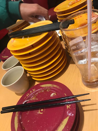 Read more2021-11 新京成鎌ケ谷大仏駅から北へ1.5kmほどのところにある回転寿司チェーン店です。 クルマで前を通るといつも混んでいる印象があるので、この日は早めに出て、土曜日の11時ころ到着で客入りは7~8割ほどでした。 店内待ちも無く、タッチパネルで受付をするとすぐにボックス席に座れました。 コロナが落ち着いたからか、レーンには普通に寿司が回っています。 自分たちはタッチパネルから季節限定寿司などを中心に注文しました。 久しぶりの回転寿司でしたが、意外と普通に美味しくて食べ過ぎました。 自分は9皿、妻は8皿ほどでお腹いっぱい。会計は4000円くらい。 うーん、これって安いんだろうか、高いんだろうか、、、 普通のお寿司屋さんでも一人2000円出せば、ランチならけっこう豪華なお寿司が食べられそうな気がします。 まあ好きなものを好きなだけ食べられたのだから良しとしましょう。