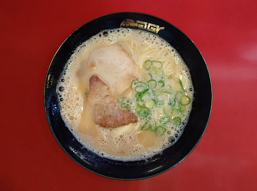 杵島郡白石町福富、国道444号線沿いにあるラーメン屋です。周辺には何もなく、田畑に囲まれた場所にポツンとあるので、すぐに見つかる事でしょう。店内はカウンター席と小上がり席のみの構成となっています。駐車場は舗装されてはいませんが、敷地内に十分用意されています。食券制のお店です。さて「ラーメン」ですが、がっつり泡立ち、茶濁したとんこつスープとなっていますが、見た目に反してあっさりした味わいで、塩味と甘みのバランスの取れた久留米系の印象が強いですね。麺は意外にも細麺ストレート、具は歯応えのあるチャーシュー、ネギのみといったシンプルな構成の一杯。良い意味で期待を裏切ってくれる一杯ですね。大盛り対応あり、替え玉制あり、各種トッピング対応ありとなっています。ラーメンのバリエーションはトッピング違いの数種類、その他メニューは「ギョーザ」「(大・小)めし」と飲み物類のみとなっています。その「ギョーザ」は、久留米の「大龍」系の「鉄鍋餃子」のようなビジュアルで、鉄鍋に添えられたネギや小皿で付いてくる塩を絡めて食すよう案内されます。因みにこちらのお店は、昼の時間帯のみの営業で、しかも度々臨時休業となっている印象なので、来店時は気を付けて下さいね。 1989年に白石町に開業されたこちらのお店、現在は2代目が切り盛りされています。元々は2002年頃に佐賀市鍋島町で「拉麺公司ある」というラーメン屋を開業されていた2代目ですが、先代の急逝により僅か2年でその店を畳み「秀ちゃんラーメン」を継がれたとの事です。幻のラーメンとなってしまった「拉麺公司ある」の味と、このような形で再会出来るとは思いも寄らなかったですね。感慨深いです。 2023年秋再訪すると、今回のお目当てだった「ギョーザ」がメニューから外れていました。偶々かと思って調べてみたら、暫く前から消えていたようで、お店のおばちゃんに聞いても笑顔を返されただけでし...