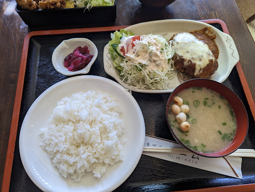 Read more白石蔵王駅側のホテルで会議があり、そこへ向かう道中で同僚と立ち寄りました。 お店のお向かいにある市民駐車場(無料)に車を停めて、いざお店へと向かうと、正面から見て左側にcoffeeポエム、右側に印鑑屋さんの看板が出ておりますが、お店に入ると中は仕切りで隔てられているだけで、一緒に経営されている感じでした。店内は喫茶側がその大半を占めており、カウンターのほか、向い合せの二人掛けテーブルが5席ほどです。 お食事のメニューは、定番のトースト類のほか、ハンバーグやピラフ、スパゲッティ、生姜焼きや唐揚げのお弁当など、かなり選択肢が多く、且つコスパも高く、そのチョイスに悩みますが、人気の高そうな「ハンバーグスパゲッティ(チーズのせ)サラダ付き」をオーダーしました。 およそ10分ほどで出てきたハンバーグスパゲッティは中々ボリュームがある感じです。スパゲッティはナポリタンを予想していたのですが、ミートソースが最初から混ざっている様な感じでしたが、コレはこれで悪くないと思いました(ミートソースも好きなので)。ハンバーグはそれほど大きくありませんが、全部食べ終わると満足・満腹感がありましたね。 一緒に行った同僚の女子も最初は全部食べれるかなとか言っておりました...