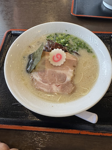 実食:これは関東系豚骨!? 待つこと10分、着丼です。 「おおっ!豚骨っぽい見た目だ〜〜〜!」 (↑いや頼んだのお前だろ、という心の冷静なセルフツッコミ) ではまず、スープをひとすすり。 …なるほど、これは九州というより関東風の豚骨ですな。 とろみ系というよりややサラリ。豚骨だけど雑味は控えめでマイルド仕立て。 正直言うと、私は九州のザラッと濃厚派なので、「思ってたんと違う」感ありでやや残念…。 でも、これは好みの問題なのでね!関東豚骨好きには刺さるやつかも。 麺は細めだけど極細ではない感じ。 これはスープとのバランス的にアリ!違和感なし。むしろ食べやすくて好印象。 具材はチャーシュー、きくらげ、ワケギ、海苔、なると 豚骨ラーメンになるとって、ちょっと珍しくて可愛いポイント。