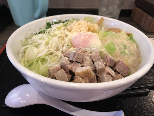 Read more2度目の来店。まぜそば以外を食べてみようとしていきました。豚そばなる豚骨系のラーメンにしてみました。メニューに写真とかがあると、選べるのでお願いしたいですね! スープはかなり豚骨の味が強かったです!豚骨が苦手な人は辛いかもですね。自分は好きなので、全く気になりませんでした!ちょっと麺と会ってない感じがしました。不味い訳ではないんですが、何となく豚骨=細麺って感じなので、そう思うのかもしれませんが、何か不満でした。あのスープで、バリカタ麺。最高だと思います。そんでもって、替え玉をする!是非お願いしたいです。 写メは豚そばラーメンの大盛です☺️