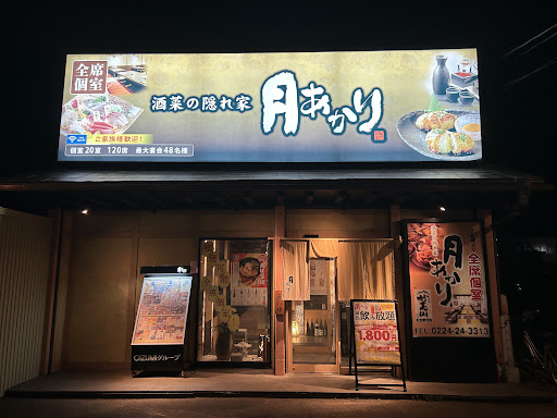 東京から4時間ドライブの末、金曜22時頃にやっと宮城県白石のホテルに到着しました。ホテルの方に夕食を食べられるお店を聞いた所、一番遅くまでオープンしているこちら「月あかり」をご紹介頂きました。