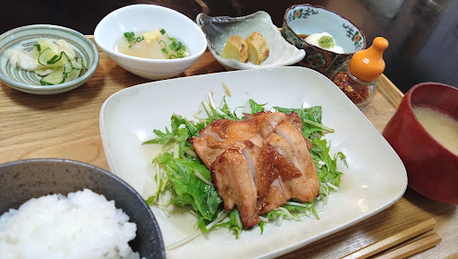Read moreここ城里町はなかなか食事できる店が見当たらないのだが、数軒集まっている1画があるのでGO❗ ランチ肉と魚から選べるこちらの店で、 『鶏もも肉にんにく醤油焼き@ふたば食堂・城里町石塚』 これは見た瞬間にビールか日本酒が欲しくなるやつ(笑)。 柔らかい鶏もも肉は下にひかれたミツバと一緒に食べるとエンドレスにイケる♫ 小鉢は漬物,大根煮,さつま芋,もっちり豆腐と上品な物が並ぶ♫ 中でも特筆するのはもっちり豆腐。目をつぶって食べるととろろ芋かと思うほどにモッチリしていて、味も濃厚♫お土産もあるので仕事でないときにまた買いに来たい。 味噌汁はチョイと甘めな白味噌にエノキ茸とネギ♫ ご飯と味噌汁はお代わりOKとのこと。 ここはなかなかの穴場と思いきや、次から次からお客さんがやってくる。 ワンオペなので混んでくるとけっこう時間がかかるかも。 夜に呑みに来たくなるなかなか好い店。 たいへん美味しくいただきました...