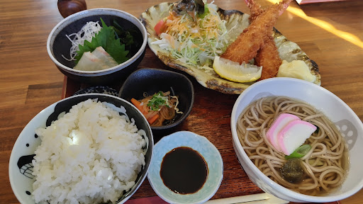 Read moreランチタイムに利用しました。お店の前には広い駐車場があります。 到着したとき、待ちのお客さんが既にいて、お店の方に順番待ちを伝えて店前で待ちました。 連絡先を伝えて順番きたら連絡してもらうのもOKとのこと。 店内は4人がけテーブルみっつ、カウンター3席くらい?あと、上がりの個室があるようでした。 Aランチを注文。エビフライはサクサク、小鉢もお刺身も美味しかったです。 温かいお蕎麦も出しが優しい味で食べやすかったです。 支払いはペイペイが使え、キャッシュレス対応しており、便利です...