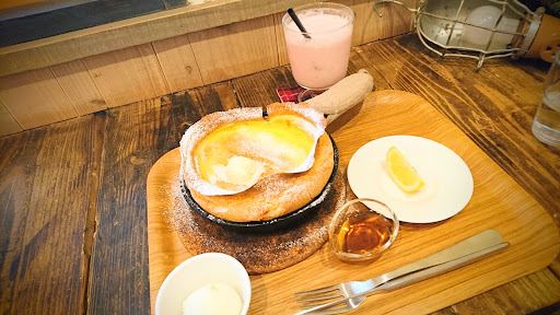 メニューも豊富です。 この日はパンケーキを注文しました。スキレットで焼きたてを提供してもらえるので、食べ終わるまでアツアツが味わえるのが良かったです。バターがもしかしたら生クリームから手作りかも? スタンダードなパンケーキにアイスクリームをつけたのですが、アイスクリームは別添えだったので、アツアツとアイスの冷たいが気持ちよかったのもポイント。 だけどなんだろう、バターとレモンとシロップとアイスクリームの相性がイマイチ?...