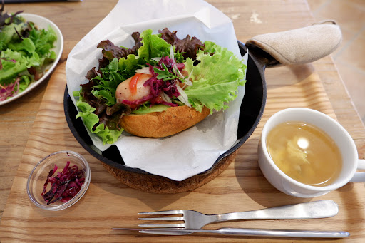Read more酒々井駅から歩いてすぐ。駐車場は隣の建物に2台あり。 緊急事態宣言解除後すぐに伺ったので、普段より座席数は減らしてありそうでしたが、片側ソファー席の2人掛け用テーブル席が4つ、両側椅子席の2人掛け用テーブル席2つの他に窓際のカウンター席とキッチン側のカウンター席がそれぞれいくつか多めにあり、外にもテラス席があって収容人数はこの手のタイプのカフェではなかなかのもの。(でも裏通りとは言え駅前で人通りがないわけでもなく、こじんまりとした店構えでテラス席には、ちょっと違和感(笑)このご時世だからアリだけど、普段はないのかも?) インテリアもおしゃれでした。 座席数はあるけど店内はこじんまりしているので、注文しやすかったのが印象的でした。