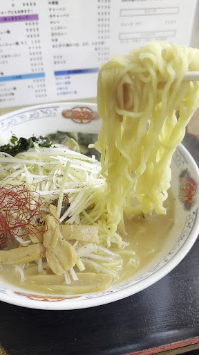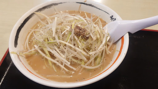 チェーンのラーメン店ですがFC経営と思われここはかなりメニューも多くオリジナリティに溢れています。同チェーンの他店はメニューもそれ程多くなくタイムサービスも無いケースが多いですが、こちらはラーメン以外の定食も充実しておりランチメニューもあり。そのせいかお昼時にはかなりの客入りで大盛況。店内は割と広くテーブル、カウンター、座敷と余裕のある造り。今回はランチメニューのねぎみそセット¥930をオーダー。ねぎみそラーメン+ご飯+餃子3個のラインナップ。何か飛び抜けて個性のある味ではありませんが、逆に奇をてらっていない安心出来る味で特に個人的に味噌ラーメンはこういう味が好みです。ネギもシャキシャキで新鮮ですがチャーシュー系の具材が入っていない点は残念。他のお客さんのオーダーを見るとチャーハンも美味しそうでした。スタッフのおばちゃんたちもてんてこ舞いになりながらも笑顔で楽しそうに接客していて好感が持てます。この近辺は意外と飲食店激戦区で高レベルなお店が多...
