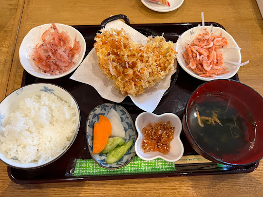 Enjoyed Sakura shrimp. Reasonable prices for the quality of food and good service. Prepare to wait. Fresh Sakura shrimp is seasonal (spring and fall) cuisine because of the limited fishing period to protect resources. However, it had believed that the resources had already declined. This year great amount of Sakura shrimp has been caught for the first time in 5 years. So many people are trying to get fresh shrimp that are only available in this fishermen town. We visited this restaurant at 11 am on a rainy Saturday, and had to wait for 3 hours to be seated. There is a waiting line system at the entrance, which you write your name and number of people on your group. You can check your turn on an app so that you can spend time sightseeing and come back when your turn gets closer. If you are on foot it takes 20 min to get there although it’s located just behind the train station. There is no direct access from...