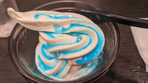 そして店内の構造。入口を挟んで左右に客席があるが、混雑時は入り口付近に待ちのお客さんであふれかえり、入口入って左のエリアに案内されると、そこを通らないとサラダやカレー、スイーツやドリンクのコーナーに行けないので通りにくい。おまけに通路そのものも狭いのでネコロボットが頻繁に立ち往生している。 さらにソフトクリームやワッフルの場所がどん詰まりの場所にあるため人が滞留し、ガキどもがはしゃいでぶつかりそうになるわ、まったく食べた気がしません。