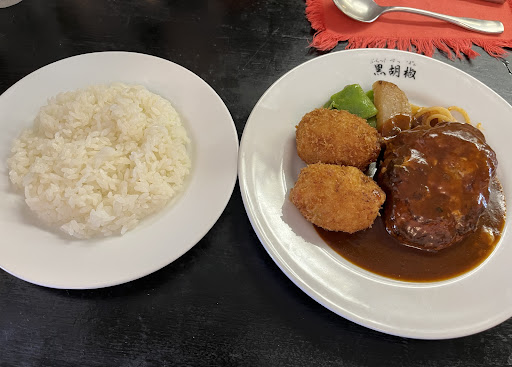 Read moreぶらっくぺっぱあに久しぶりに行って来ました。ランチメニューの中からハンバーグランチ(ハンバーグ、コロッケ)1180円+ランチコーヒー260円を注文。待ち時間5分程でスープとサラダが+4分でハンバーグが到着、ハンバーグは柔らかくとても食べやすいが普通な感じ、コロッケは2つあり通常のクリームコロッケともう1つはカレー風味でとても美味しい。コロッケのみのメニューがあったら頼みたい位です。コーヒーは少し濃い目でした。何回か来ていますがハンバーグメニュー以外を食べた事がないので今度は別の物を頼んでみようかと思います。駐車場は店の前に3台、店の西側の駐車場に3台分のスペースがあります(今日はお隣が休みでお隣...