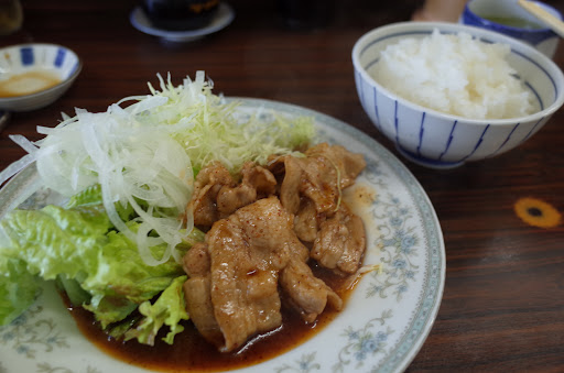 《みっちゃん食堂》 市場関係者用のお店なんでしょうけど一般客も入れる事をマイレビ様の口コミを見て知り訪問 食堂といってもメニュー数はさほど多くはなく 客席もカウンターのみで2名のお姉様でのオペレーション 前期の通りお腹が減っていたので 【焼肉スペシャル(950円)】を注文 ※焼肉定食に半ラーメンが付いたセット