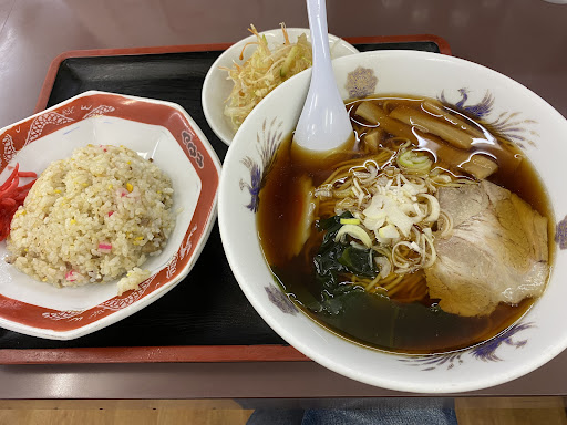 駐車場は道路を挟んだ店舗北側にあり、店内はカウンター席やテーブル席が並ぶ昔ながらの町中華の雰囲気。 ランチメニューは分からないが、お値打ちなセットメニューは5種ほど。 だがそこに私が求めている料理はなかったので、今回は単品でこの注文。 厨房を見ながら待っていたが、ほぼ同時進行で手際よく調理されていく。 まずは先に運ばれてきたチャーハンを頂いてみる。 ビジュアルは決して悪くないが、主な具材は卵と蒲鉾と高菜かな。 見ていた通りしっかり炒められているが、卵の少なさと油の多さが際立つ。 ラードならコクが出て悪くはないと思うが、サラダ油のような軽い感じ。 味付け前の焼きおにぎりを食べているような感覚で、せっかくの薄味が仇となっている。 パラッともしっとりとも言えずダマが多いチャーハン、710円という価格は残念としか表現が出来ない。 ワンタンメンは町中華ならではのスープの旨味を際立ち、若干濃いめのカエシがまた美味しく感じるポイント。 ツルッとまではいかずしっかり食感を感じる雲呑、肉が多めで食べ応えある美味しさ。 このワンタンが5~6個入っており、メンマ・ほうれん草・ネギといった具材も嬉しい。 パツッと絶妙に茹で上げられた中細麺、このクオリティなら大盛でも良かったかも。 このワンタンメンや女将さんの親切な対応など良い部分が多いが、チャーハンだけは求めていたものとは違った...
