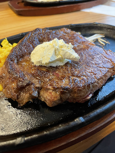 お肉はカウボーイステーキ300g頼みました。 ご飯などとセットですが、お腹が空いていたら女性でもペロっと食べれちゃうのではないかなと思います😋 上にバターが乗っていて、お肉も柔らかく、適度に脂質の部分もあるのでとても食べやすかったです❗️ 筋?もありましたがちゃんと噛みきれました。 因みに私はお塩🧂をかけてたべました。