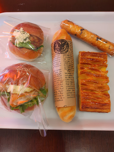 2025年8月15日、金曜日、午前8時45分頃、ふたりで初訪問。 駐車場は、お店の前に、8台分くらいありました。 お店の中に、1歩入ると、大きめで、綺麗なパンが何種類も並んでいました。ひと目見て、綺麗だなあと惚れ惚れしました。 たくさんテイクアウトしてしまいました。 枝豆チーズパン 320円 カレーパン 280円 フィッシュサンド 420円 プーさんのおやつ 270円 焼き芋抹茶モンブラン 380円 りんごのデニッシュ 370円✕2 カスタードドーナツ 230円 帽子パン 220円 ラズベリーロール 410円 です。 帽子パンは、女性スタッフが「焼きたてです。」と言って運んできたのを、息子がその言葉に惹かれて、選んだものです。 会計の機械もユニクロみたいな最新式だし、女性スタッフは、パンをひとつずつ、パックに入れたり、紙で包みながら、ビニール袋に入れてくれたり、商品の扱いがとても丁寧でした。 駐車場に戻り、車中で、私は、フィッシュサンドを、息子は、帽子パンを食べました。 フィッシュサンドは、パンが柔らかく、中身も自然な味。焼きたての帽子パンは、ものすごく美味しかったです。帽子の頭部分は、柔らかく、ひさし部分は、カリッとしたクッキーみたい。どうしたら、こんな風に焼けるのだろうと思ってしまいました。味も、素直な、素朴な味。何度も静岡市には来ているのに、このお店を今まで知らなかったのが、ずいぶん損した気持ちになりました。 朝はやくから、営業されているようです...