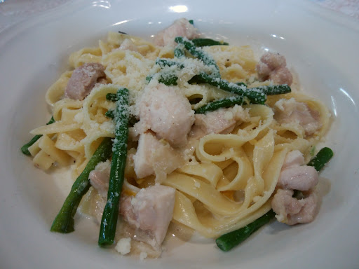 私と母はオードブル、妹はパスタ 白い器にそれぞれチョンと乗る料理が愛らしい…先ずはサラダ。サーモンの塩っけとチーズのまろやかさ、んまいっ!!!サラダだけでこの美味さは…そう思い淡いピンクのチキン2枚これも美味しいっ!!!柔らかくて優しくて味付けは塩のシンプルそのもの。なのにしっかり美味しい。 そしてテリーヌ!レバーの臭みは一切感じずあの独特な甘みがお口いっぱいに!!!これ一番美味しい!!テリーヌについていたオリーブの実…別のイタリア料理で食べた時に苦手意識があったけどマッシモさんのは癖がない!テリーヌでもったりした口を爽やかに調えてくれて…オリーブは油なのになんて爽やか✨ そして私の課金アイテム「トスカーナ伝統の豆」これも凄い、ペースト状の豆のスープで素材の味がふんわり。これは病気の時に食べたい、元気な時も食べたい。テリーヌのオリーブの実がお口直しなら、このスープにかかったオリーブオイルは素朴なスープを一気に華やかにしている!夢中でお口に運んでしまいすぐ器が空に✨いや本当に全てが美味しい。隣のおじ様おば様は間違ってなかった