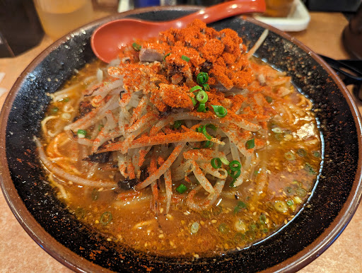 辛い味噌ラーメンは好物なので、10分ほどの待ち時間にあらかじめ提供されたすり鉢入りの胡麻をすりながら期待して待機。 ラーメンは大きなどんぶりでなかなかのボリュームです。 大量のもやしのほか、木耳や粗めの挽き肉が入っていて食べ応えは十分。 麺は細麺で茹で加減も良い感じ。 食べ進めると汗が噴き出しましたが、むせるような辛みではなく、美味しかったです。 特段、辛いラーメンが好きなわけでは無い方は、辛さは普通以下にされた方が良いです。 カウンターでいただきましたが隣席との距離感も近すぎず、落ち着いて食べることが出来ました。