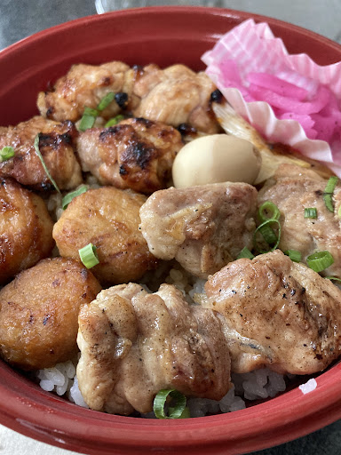 お昼時にテイクアウト用の丼を販売されているのは知っていて気になっていました。 家族が買ってきてくれたので初めて頂きました。 炭火焼きかな?モモとつくねの焼き鳥が敷き詰められた丼で、焼きネギと漬物が添えられています。モモは塩とタレ両方のっているようです。 こちらの大きいサイズで520円。小は370円だそうです。 ごはんもおいしくて思わ...