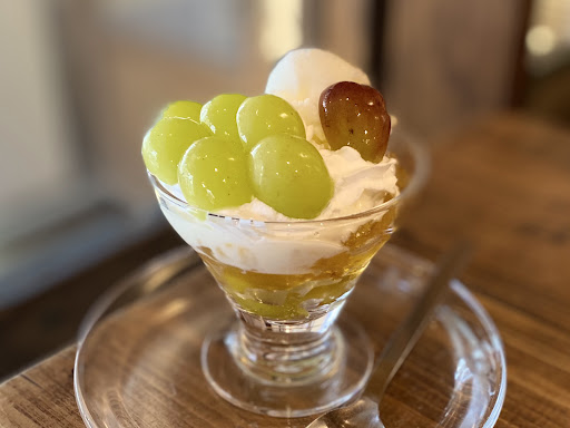 メロンパフェは時期じゃないのでなかったけどシャインマスカットパフェはありました。 こちらもメロンと同様普通サイズのは要予約なのかな。ミニパフェは当日注文でも可能だったのでいただきました。