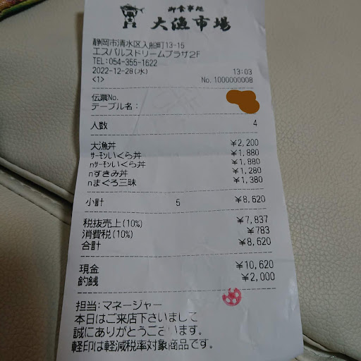 Shimizu Sushi Yokocho13-15 Irifunecho, Shimizu Ward, Shizuoka, 424-0942, Japan