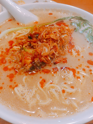 10分も待たず着丼。ニンニク、もやし、ニラ等具だくさん。美味しすぎてもっと具が欲しくなりましたが、麺も豚骨スープも負けず美味しかったです。勝手にスープは中華風の薄味なのかとか思ってたんだけど、意外と濃厚でミルキーなスープ、ストレート麺は弾力があってスルスル。満足。