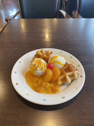 マンゴーマンデーってなんだろっ?と ヨーグルトとマンゴーのデザートとの事。 大きな器に、バニラビーンズがしっかり入った高級系バニラアイスが入っていて さっぱりしていて美味しい。 コーヒーも美味しい。