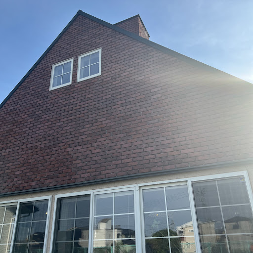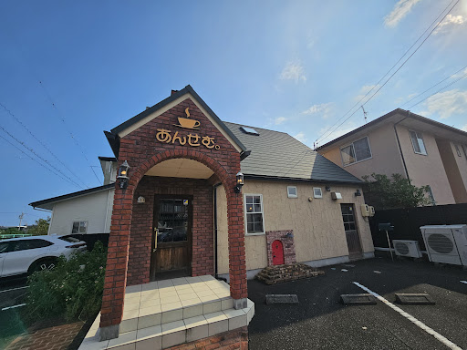 ランチ後、少し時間があったので 喫茶店でググって出てきたお店。 住宅街の中にある。 可愛いレンガ造りのお店。 ひらがなのロゴ看板がレトロチックで好き。 上には煙突。 猫ちゃん用?小さな扉。