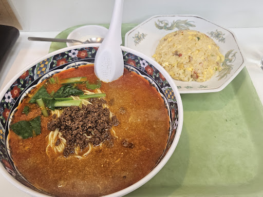 店内はカウンターが6席、4人掛けテーブルが1卓、6~7人は座れそうな円卓が1卓。 カウンターに着席し、目あての担々麺に半チャーハンを付けて注文。 先客が何人か料理を待っていましたが、ご主人と奥様(?)の手際が良く15分かからずに着丼🍜。