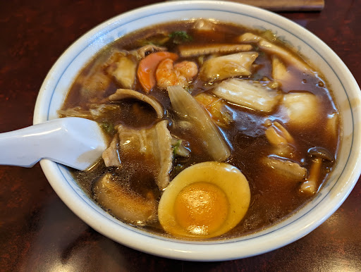 甘めの中華あんがたっぷりのってます。 ごま油が香って味は濃いめ。 具だくさんで、特に大きめのしいたけがすんごくおいしいです。