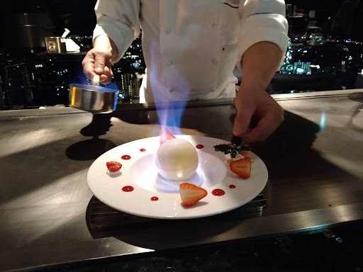 Read more総合的に30点かな。 ディナータイムにお邪魔しました。 ビルの25階にありロケーションは良い。早い時間でしたので確認出来ませんでしたが夜景は素晴らしいのかなと想像出来ます。富士山は逆側なので見えません。 カウンターは4組まで座れます。 選んだコースのせいなのか、私たちの容姿のせいなのか、目の前では焼いて下さりませんでした。 他の3組の方は目の前で焼かれていました。私たちの前には調理の為に使う道具や他のお客さんに出すだろうラップがかかった料理などが無造作に置いてありまました。ここに置く必要あります?せっかくのカウンター席が一つ潰れていてもったいない。調理さんの後ろに置けばいいのに。 前菜はもう一工夫欲しい。スープはぬるい。ガーリックライスはほぼ炒飯でした。せっかくのお肉もミディアムレアを頼んだのにほぼウェルダンに近いものが。料理長らしき方が焼いてくださりましたがとても残念。全体的なボリュームとお肉を二回に分けて出していただいたのはグッドです。 サービスについては女性2名の方は作法も話し方も好印象でした。入口にいらっしゃった男性ソムリエの方は良くないですね。第一印象から良くない。無愛想というかなんというか。見下されてるように感じました。入口はお店の顔ですよ。お迎えもお見送りも最悪。 焼き手の方も料理を出すときの仕草や作法がだめ。モゴモゴで何を話されているかも分かりません。 それと店内のBGMは何かつけた方が良いんじゃないでしょうか。 厳しめになりましたが私たちは初見だったので良くなかったのかもしれません。リピーターの方を大事にするお店なのでしょう。顔を覚えてもらえれば良いサービ...
