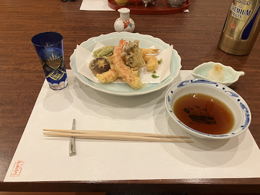 昨年結婚30年で訪れた某ホテル鉄板焼きが散々だったので、今年はどうしようかと考えていたところに、妻が「町内にあるでしょ」とアドバイス。 しかし私は魚介類は海老天と蟹肉と鰹節以外はほぼダメ。 ということで、ダメもとでお店に相談してみました。 予算3万円で妻は食事、私はビール飲みたいと伝えてセッティングお願いしました。 ということで来店。 通されたのは予約していた個室。4人掛けを2人で使わせていただきます。 妻はお店が提案してくれた16500円のステーキコース。私はお魚まるっきりダメ酔っぱらいオリジナル価格未定。一応予算は3万円と伝えました。 妻の先付は貝とあん肝といくら。私は瓶ビール。 私と子供三人が偏食のため、食卓にあがらなかった3品です。 次は妻の刺身三色に合わせ私は天ぷら。 驚いたのは刺身に「のどくろ」があったこと。日本海側の魚だと思い込んでいましたが、三保沖でも獲れるそうです。他はカツオとアジという静岡では間違いない刺身。 天ぷらはエビ2種にキノコ2種野菜4種。多分しいたけは有東木産の生しいたけ。 妻の次はタイのポワレオレンジソース。和食から洋食に転じました。 次は妻と私で同じステーキ。これはフレンチステーキで、今回はレアの仙台牛にアスパラ他の野菜を添えたもの。うん、美味しい! 柔らかくて、くどくなくて、旨味が楽しい。 次は妻に握り6貫。大間産のマグロ2種とウニ軍艦が妻のお気に入り。 その後妻に椀物、2人にデザートの自家製プリンとフルーツで終了。1時間半の素敵な時間を妻と2人で過ごしました。 お会計は、私の分を一番安いコース価格で仕上げてくれた模様でで、ビール2本と妻のウーロン茶代を含めても予算以下でした。 摂待にも十分使えるとは思いますが、まずは大事な人と来...