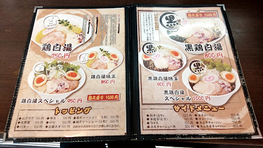 メニューを見ると鶏白湯の他に、辛い赤鶏白湯や黒鶏白湯も有るようです、赤鶏白湯は辛さが選べるようで、10以上をクリアすると店内に認定証を張ってくれるシステムみたいです。