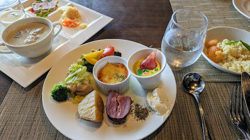 Read moreとても楽しみにして初めて伺いました。事前予約をしてたのですが、名前が呼ばれるまでしばらく待ちました。席に案内していただき、本日のお肉コースか魚コースの説明。メイン料理は少し時間がかかりますとの事でしたので、先に注文しました。最初はブッフェコーナーにたくさん人が集まるのは仕方ないとしても、ドリンクとブッフェコーナーが近すぎて狭い、なかなかの取りづらさを感じた。ライブキッチン的なスペースがあり、何を作ってくれるのかなと思ったら「肉うどん」ってなっていて…、え??ってなりました。そしてまた右奥に空きスペースがあり、のちにそのスペースがスイーツコーナーだと分かりました。比較的バイキングのメニューは軽めなものが多く、デザートはブッフェ終了15分前にはほとんど種類の補充はなく、とーっても残念でした。中でスタッフさん同士が話をしていてお皿を持って待っているお客が見えてるはずなのに、、、。そして、子連れの人はオムツ替えや子供のトイレに行ったりしていたら、食べる間もなく本当にあっという間に終わってしまうからスイーツを食べるタイミングだったりって人それぞれになってしまうのになぁ。。。 メイン料理は美味しくいただきましたが、 スープはとても塩っぱくてびっくりしました。 モカのロールケーキはおいしかったですが イチゴのショートケーキは非常に残念なお味でした。 タルト系はなくゼリーやスポンジ系がほとんど。 ホールのスタッフさんは接客がとても良かったですが… クチコミを見て楽しみにして行っただけに、とーっても高いランチに...