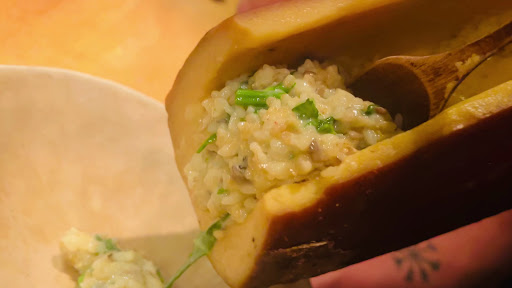 名物!24ヶ月熟成コンテチーズの流しリゾット ↑これは名物で盛り上がるのでオーダー❣️