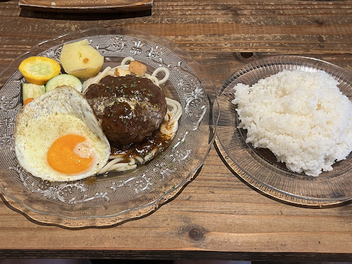 Very chill vibes. You have the option to sit in a hammock or at a booth. Take my advice and try the hammock, super fun! The hamburger steak is so delicious and comes with a coffee for +100¥! Note: this is a dog friendly cafe, so if you have allergies this might not...