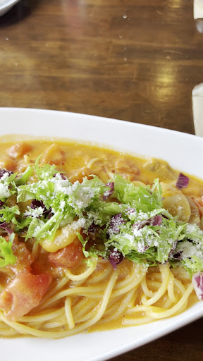 次から次へと人が来ていましたが ホールは女性スタッフ1人で素晴らしい働きぶり。 たまに中の人が、パスタ運んだりしていたけど ご案内から注文、運ぶ、片付け、レジまで 1人でこなす! 素晴らしくテキパキしていた。 3人分以上の戦力!