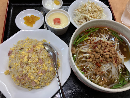 蒲原のイオンタウンにある中華屋さん。遅いお昼だった為、ちょうど帰るお客さんとすれ違い客は私だけ。 ラーメンセットの台湾ラーメンとチャーハンのセットを注文。 3人でテキパキと調理をこなして程なくして提供され、台湾ラーメンも辛すぎずチャーハンはパラパラで美味しくいただきました。ボリューム満点です。