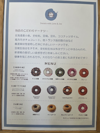 北海道産小麦や全粒粉、豆腐、豆乳、ココナッツオイルなど、厳選素材を使った体にやさしいドーナツのお店。 今回は豆腐生地から「黒糖きなこ(270円)」「ホワイトオレオ(324円)」、全粒粉生地から「ホワイトチョコ(356円)」「チョコココナッツ(356円)」を注文。 豆腐生地はもっちり濃厚で味わいしっかり、全粒粉は外ザクっと中ふんわりであっさりめ。食べ比べが楽しく、健康志向の方やお土産にもぴったり!お...