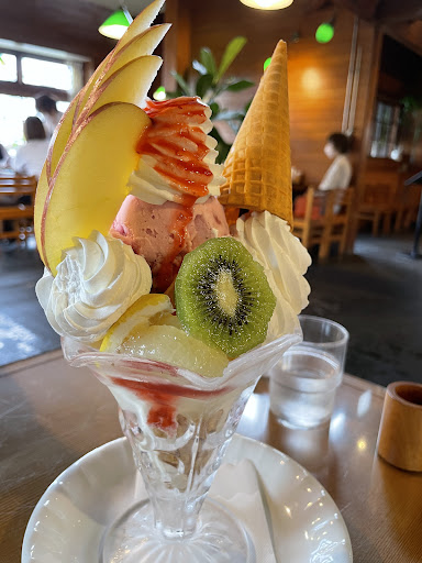 パフェもやっぱすごっ!!! どこから食べていーのか!?これまた壊すのが勿体無い!!ずっーーーーと見てたい(^^) 丁寧にカットされたフルーツの一つ一つもうま〜い! もったりとした甘さ控えめなおもめの生クリームとあま〜いアイスが懐かしくいいかんじ〜! アイスの溶ける時間がないくらいあっという間に完食!!! どれもほんとおいしかった!!