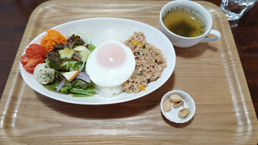 Read moreフレンドリーな店長さんと娘さんで、 居心地がいいカフェ。 広い通りに面しているのに、小ぢんまりしていて見落としてしまいそう…入口の狭さに見合わない奥の広さです。 お通し?のピスタチオがとても美味、 テイクアウトもあったので即購入。 お食事も女性にちょうどいい量で サラダのきゅうりとトマトが可愛くカットされている気遣いが💮 ランチはセットのミニソフトがおいしいので、 ...
