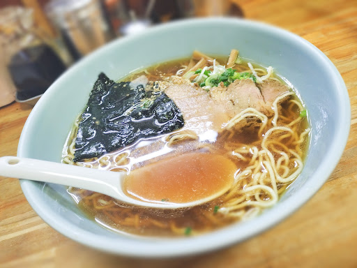 20数年ぶりの訪問でしたが、当時と変わらないさっぱり醤油味のラーメンと小と言うには少し多い卵で色付けした黄金のチャーハンは紅生姜と食べてやっと味があるくらい薄味。 低学年の子に飴1個プレゼント、麺を解しながら左右に軽く動くご主人、何よりも凄いのは、ここのおばさん、ユーエスバー(USB―)23名分以上の注文を、頭で全て管理。それをおじさん1人で調理するので、注文から料理提供まで平均30分程かかる。 その間、おでんでも食べて待つと良い。 おでんは、ラーメンスープとそのラードが隠し味で入っていて、これまた癖になる美味さです。セルフ式で、見た目が黒く濃そうな感じですが、色ばかりで、ラードの香り...