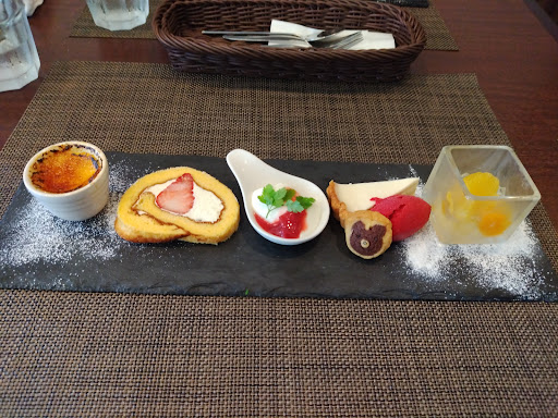 Read more土曜日のお昼に2名で2800円のランチコースを予約。スープ、前菜、メイン、デザート、ドリンクが付いてこのクオリティと値段は本当にあり得ないくらいお得です。前菜5種のサザエとローストビーフはとてもおいしかったです。メインのチキンもとても柔らかくてマスタードソースも絶妙でした。それからデザートのタルトもしっとりしていて美味しく、予約でテイクアウトもできるそうです。静岡市にはあまり美味しいケーキ屋さんが無いので、ケーキのテイクアウトもありだと思...
